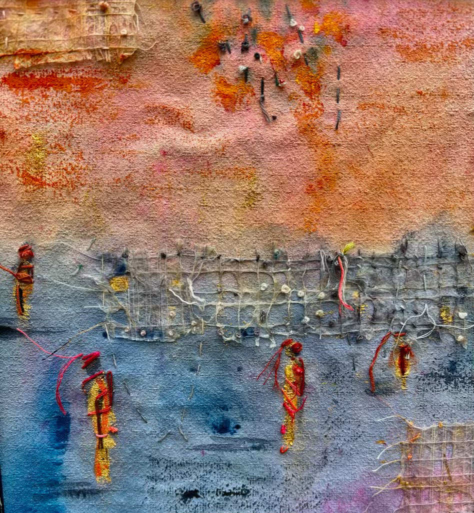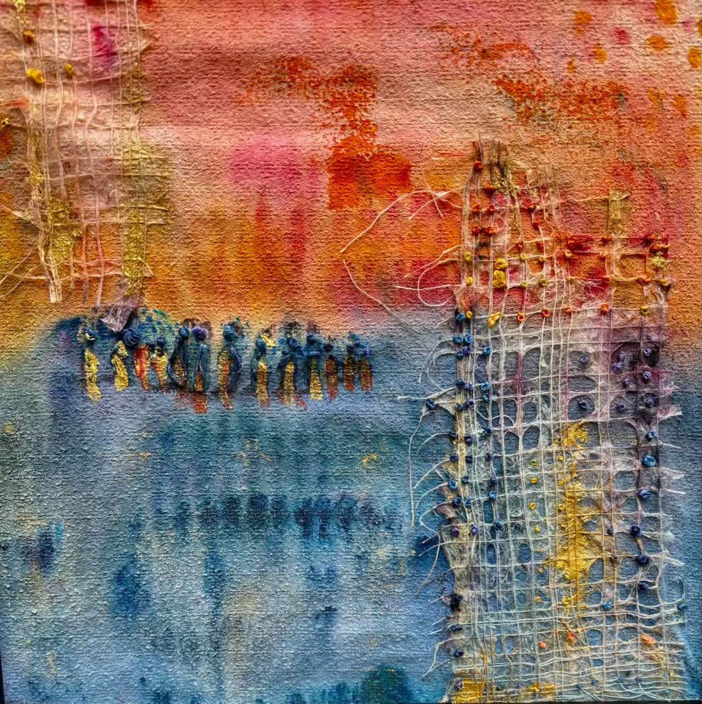 SwordWomen of the Forest are works done on silk, painted with acrylic and embroidered