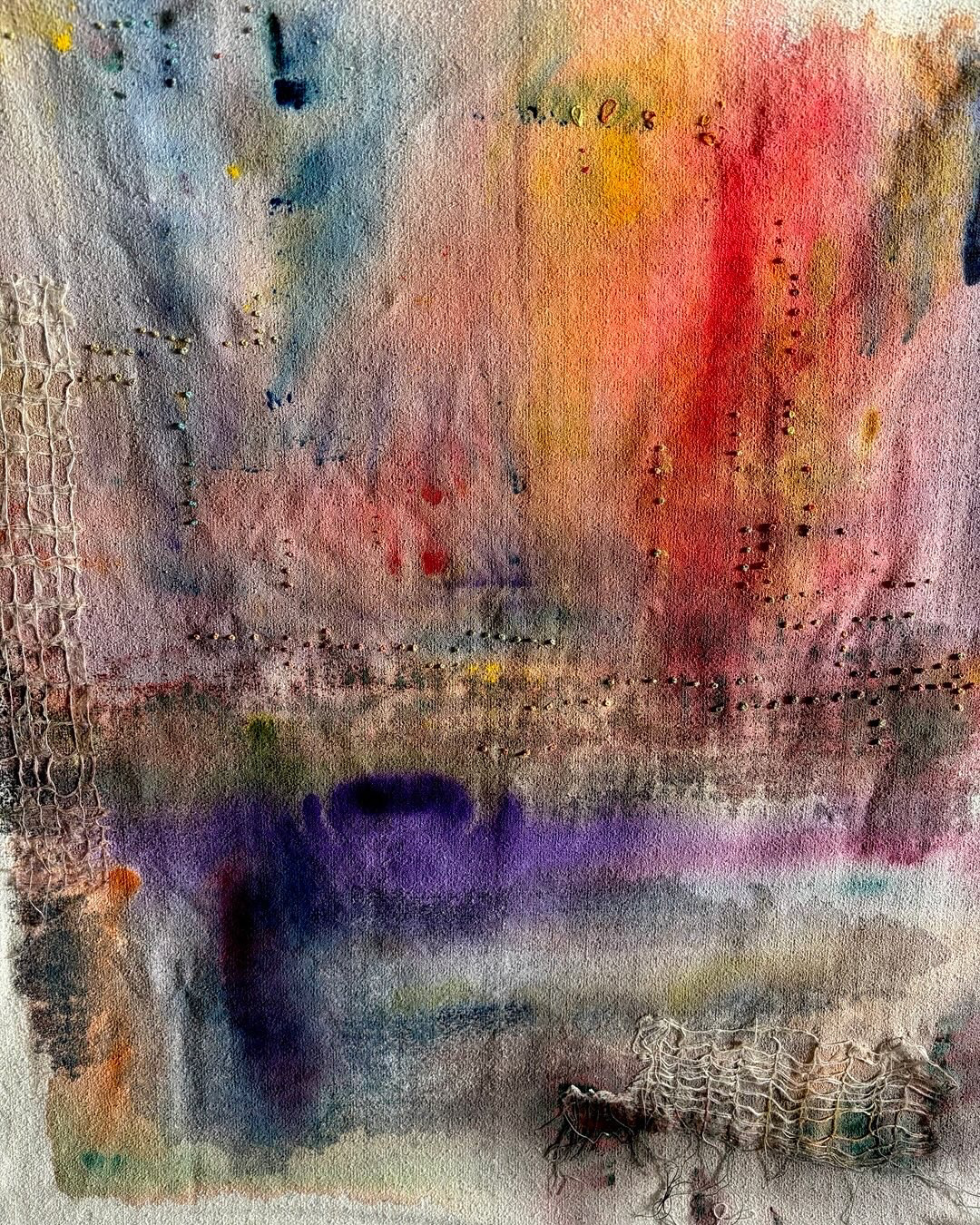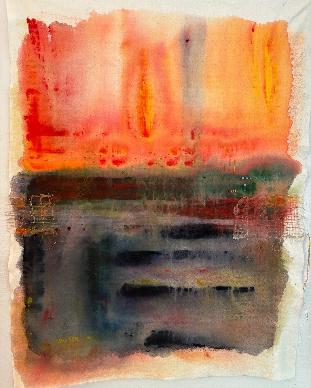 Acrylic on Silk with embroidery